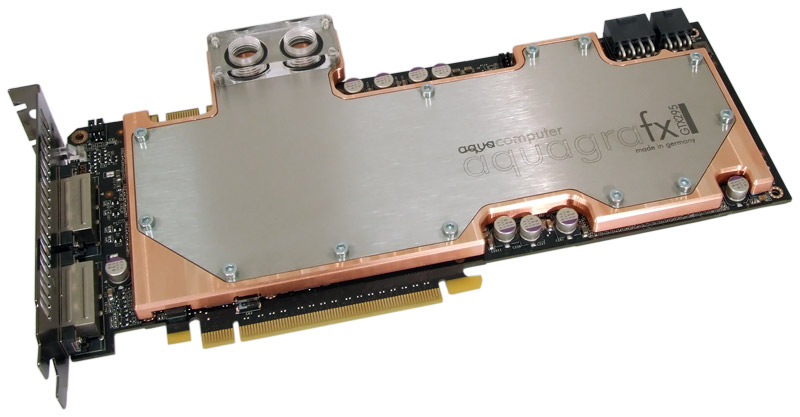 Der 880 Gramm schwere Kühler wird aus rund 2kg Kupfer gefräst. Die Wasserführung ist im Vergleich zu anderen Kühlern sehr aufwendig; kommt dafür aber an fast allen zu kühlenden Teilen vorbei, was eine optimale Kühlleistung sicherstellt. Die Gewinde sind in G14" ausgeführt, so dass diese mit allen gängigen Anschlüssen kombinert werden können.