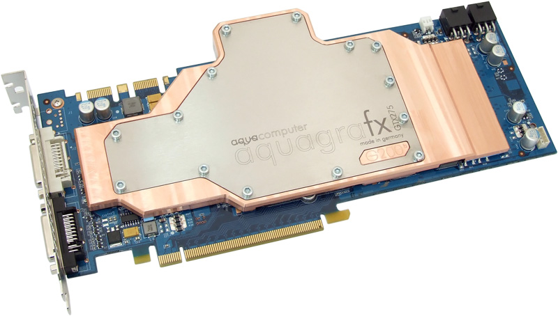 Die Komplettkühler aquagrafx GTX275 und aquagratix HD4890 sind aus reinem Elektrolyt-Kupfer CNC gefertigt und wurden wie alle Kühler aus der aktuellen Komplettkühler-Serie auf sehr geringen Durchflusswiderstand ausgelegt. Dabei wurde auf eine äußerst flache Bauweise geachtet, die nur einen Slot belegt und zudem zu einem geringen Gewicht des Kühlers führt.
